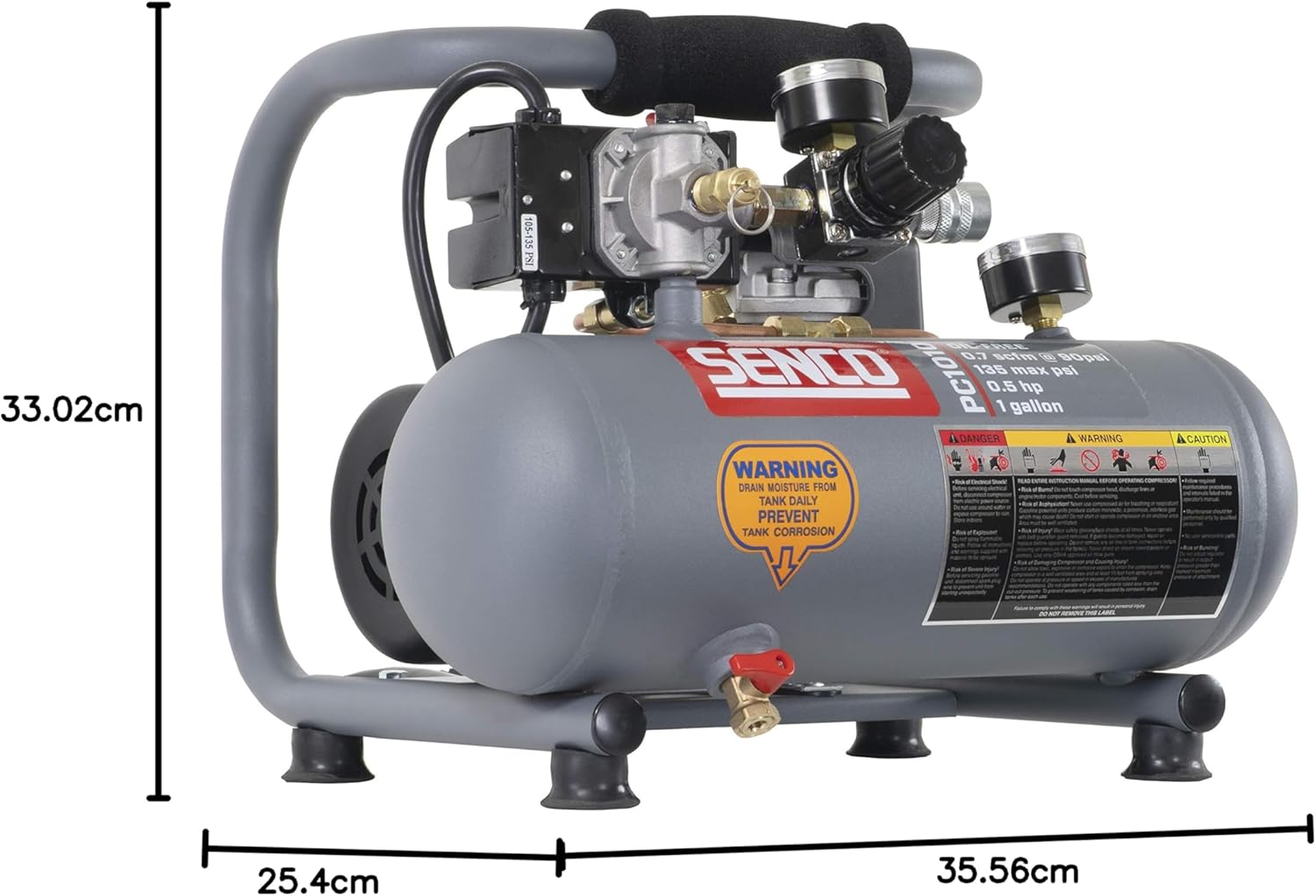Senco PC1010 1-Horsepower Peak, 1/2 hp running 1-Gallon Compressor
