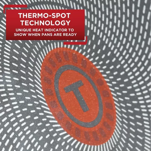TECNOLOGÍA THERMO-SPOT: Indicador de calor que se vuelve rojo para mostrar cuando las ollas están precalentadas.