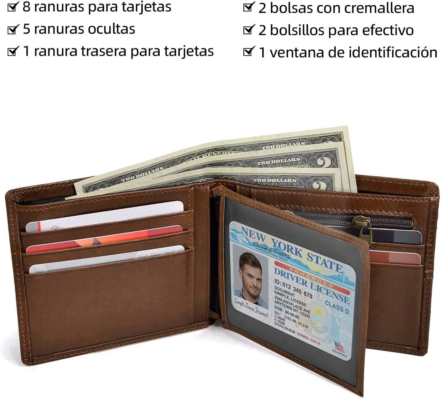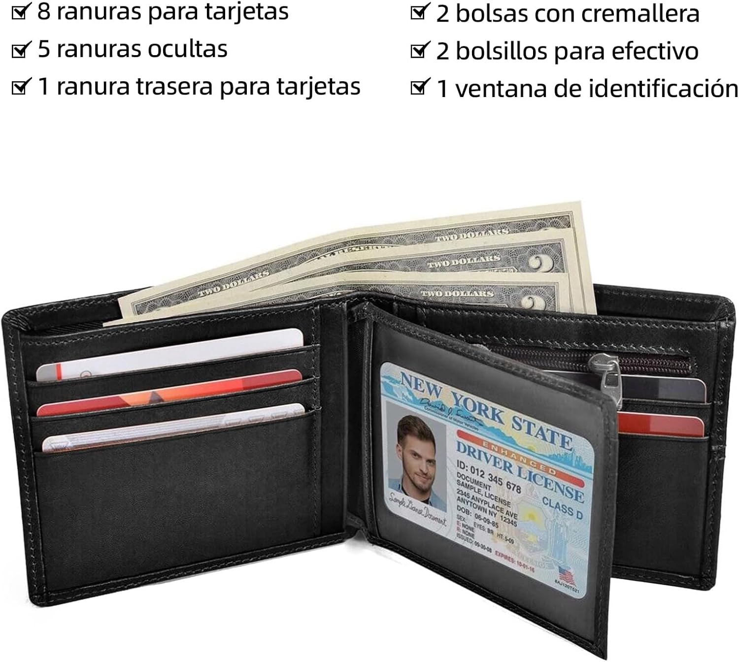 - Mucho espacio para tarjetas y papeles:8 ranuras para tarjetas,5 ranuras ocultas, 1 ranura trasera para tarjetas,2 bolsas con cremallera,2 bolsillos para efectivo,1 ventana de identificación.Puede contener un TOTAL de 14 tarjetas.Clasifique dinero y tarjetas,fácil de poner y sacar.