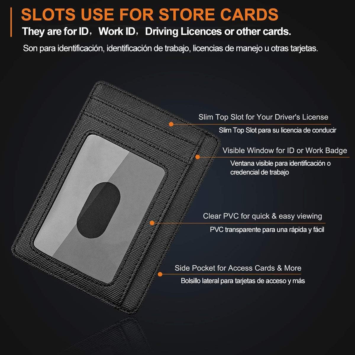 - 【Diseño único】: seis ranuras para tarjetas, una ventana completa para identificación / foto y un entrepiso para guardar dinero o recibos. El diseño hueco del entrepiso del portatarjetas le permite sacar la tarjeta en cualquier momento. Es muy adecuado para guardar dinero y tarjetas. y es compacto y portátil.