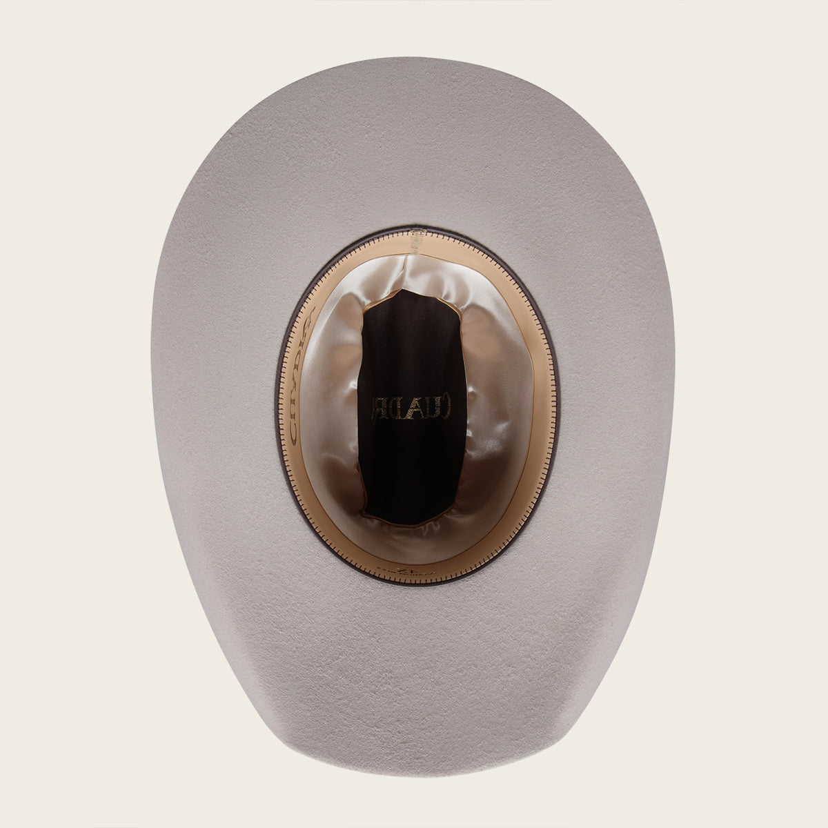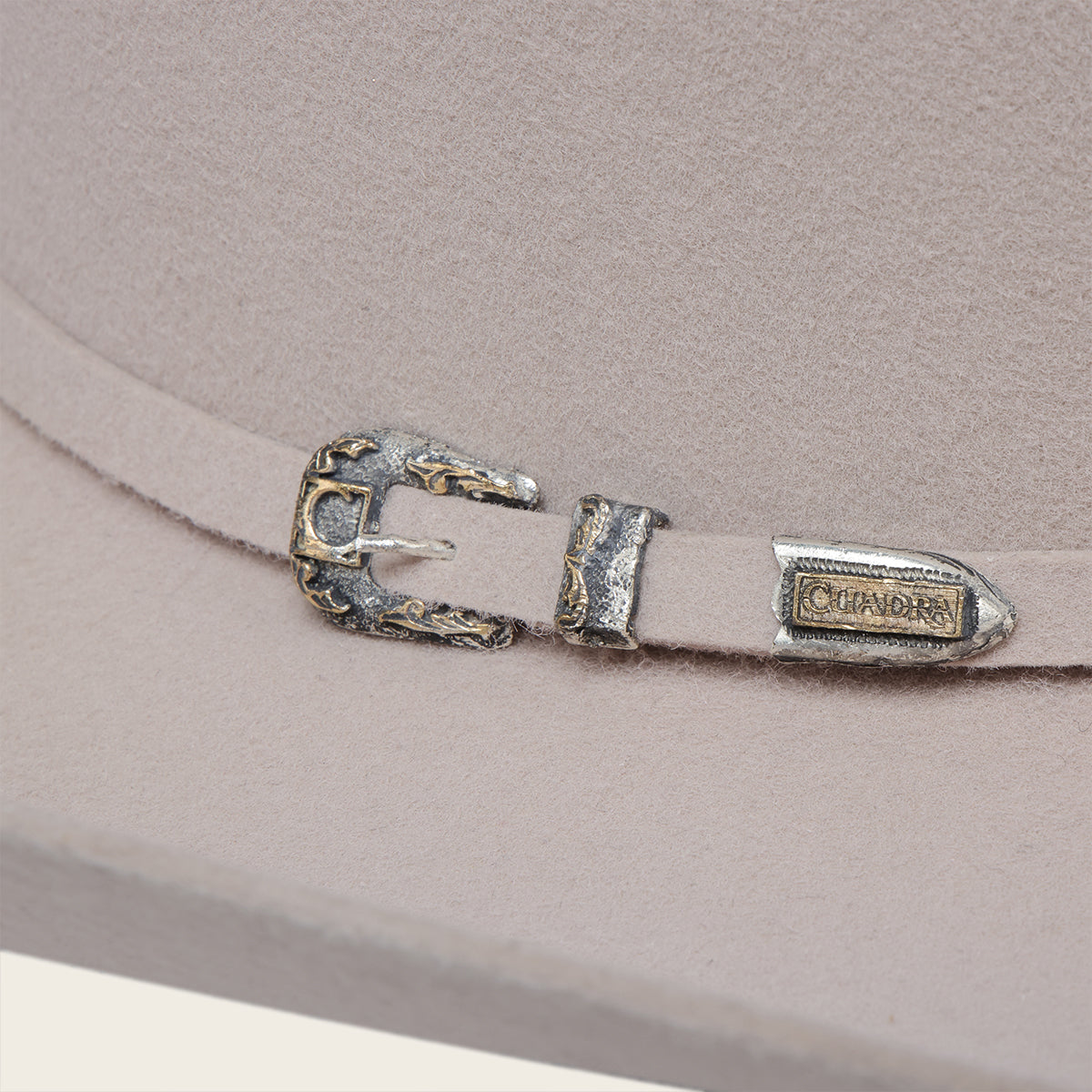 Sombrero de lana. Presenta ala de 4 pulgadas y toquilla con hebilla metálica. Con forro de satín y tafilete en piel genuina de bovino.