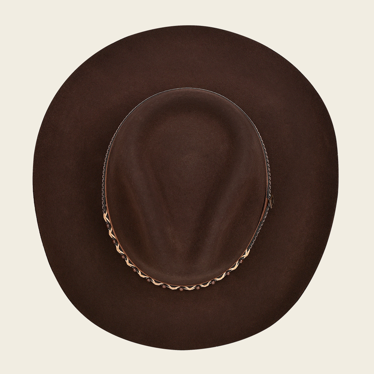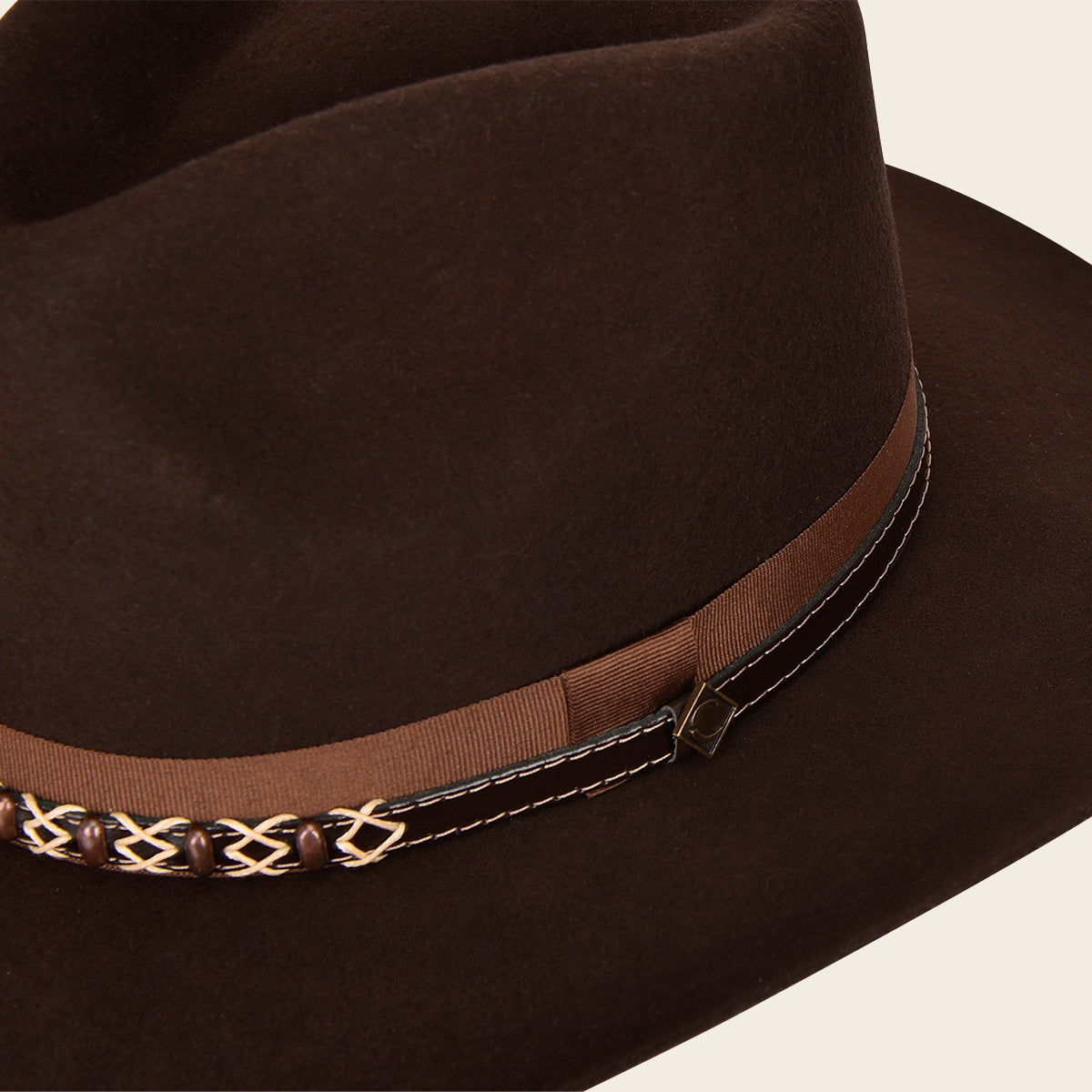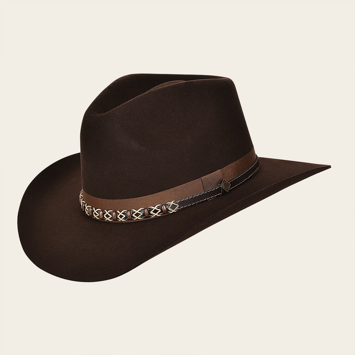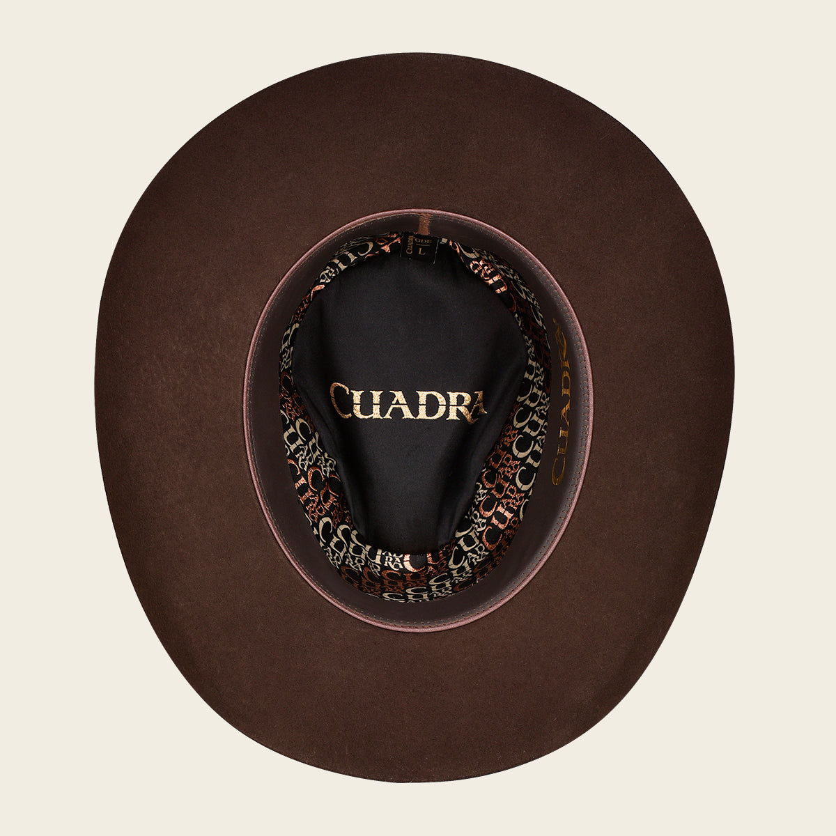 Sombrero Cuadra unisex de pelo genuino de lana. Presenta cintillo de tela y piel de bovino con aplicaciones de trenzado y monograma metálico de Cuadra.
