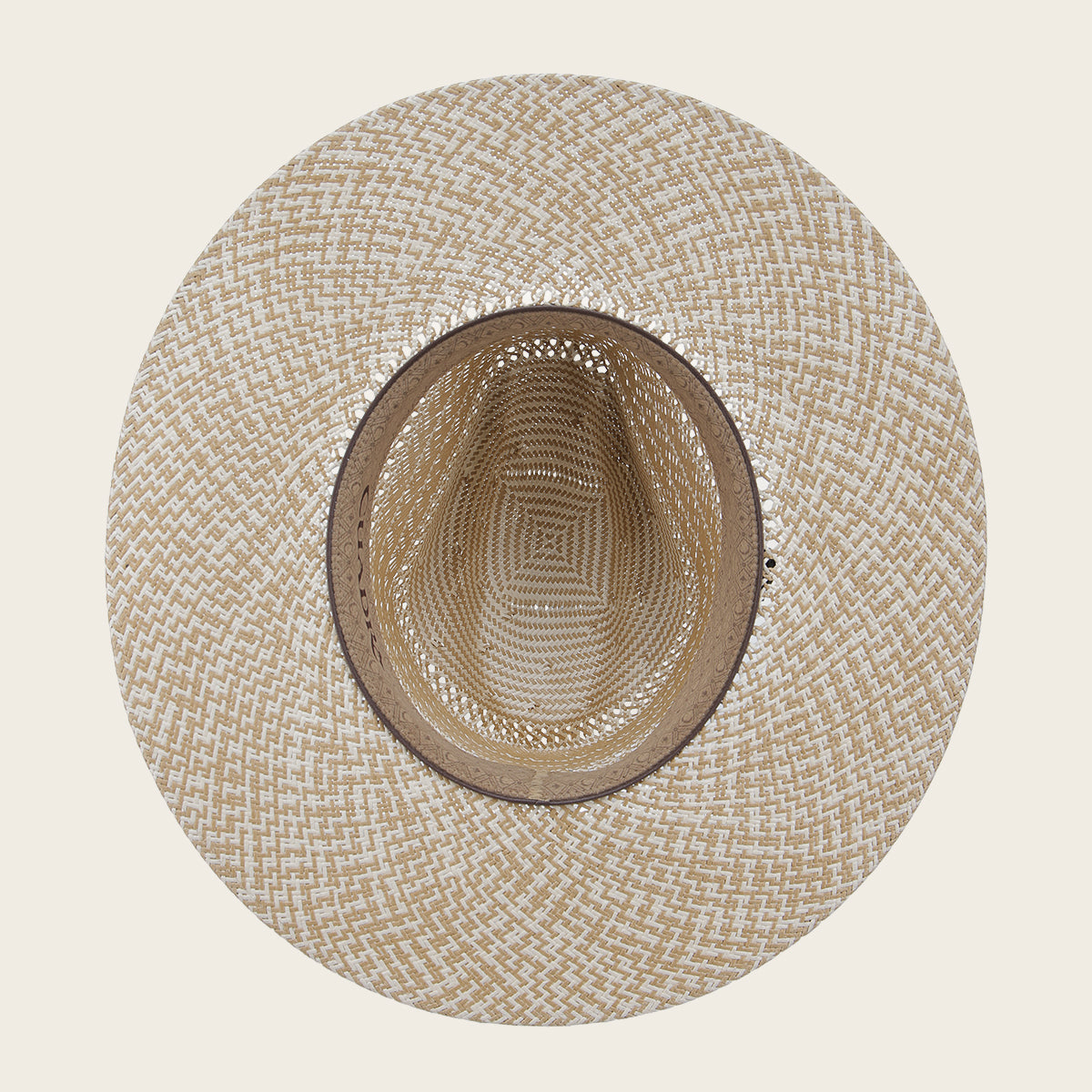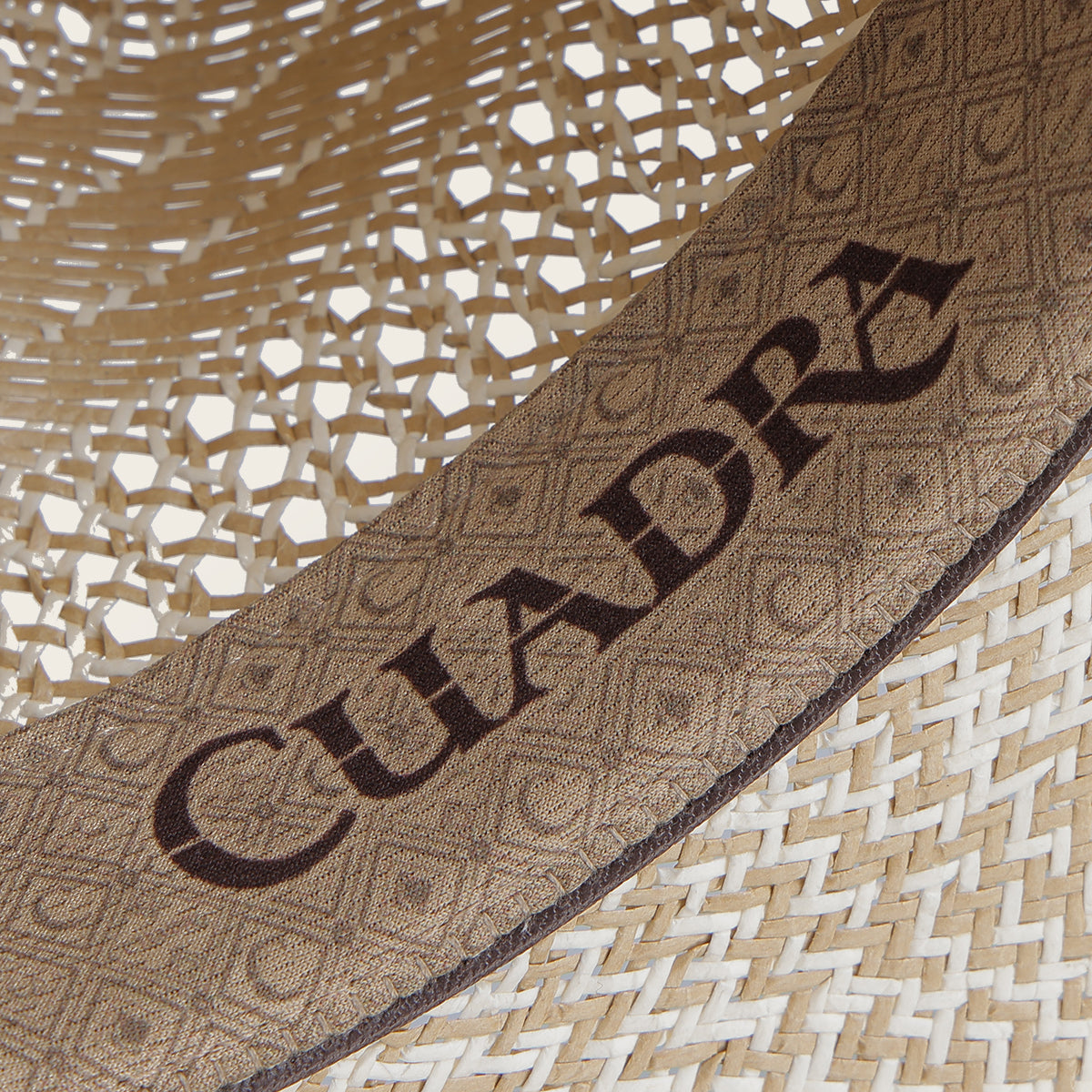 Sombrero de paja tipo Panamá. Hecho con fibra natural Shantung. Cuenta con cintillo textil con aplicación metálica del monograma Cuadra. Presenta tafilete de tela antimicrobial para secado rápido.