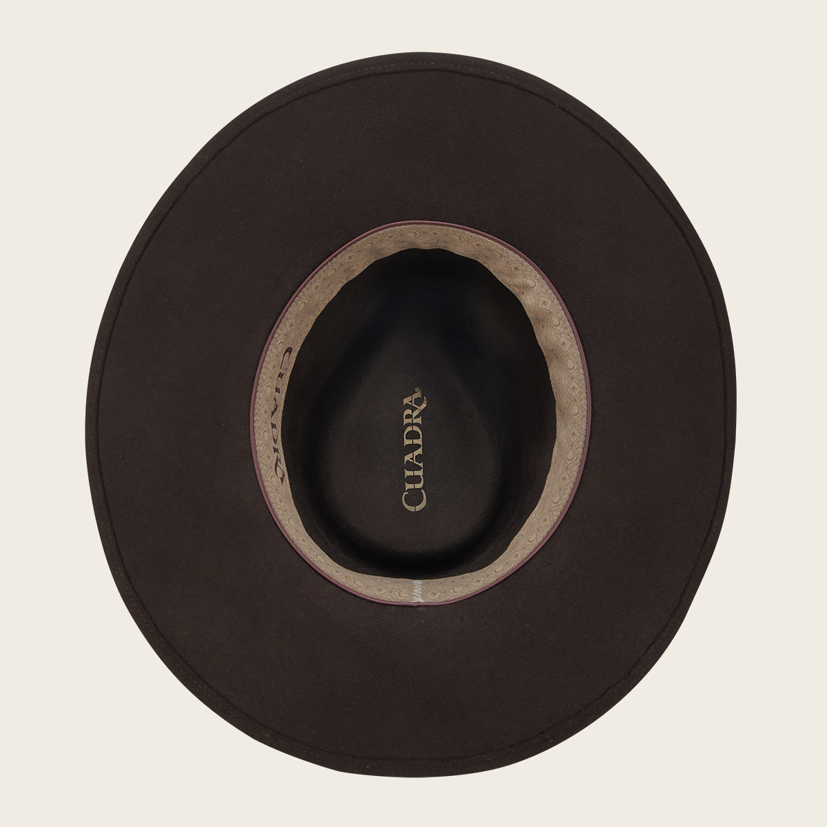 Sombrero Cuadra de lana premium. Presenta toquilla con trenzado artesanal. Con tafilete de tela antibacterial para secado rápido.