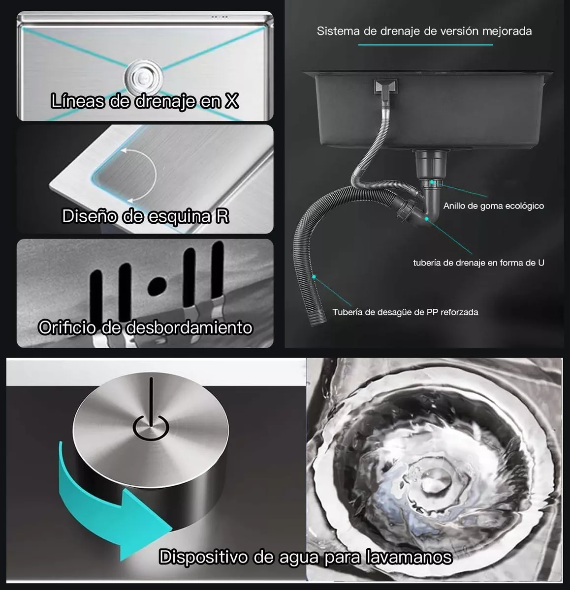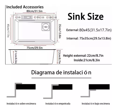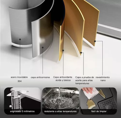 Materiales de alta calidad: Este fregadero de cocina está hecho de acero inoxidable de calidad 304 nanométrico, que es resistente a la corrosión y duradero. Es muy fácil de limpiar y ofrece un rendimiento duradero y confiable. Con un grosor de 3 mm.