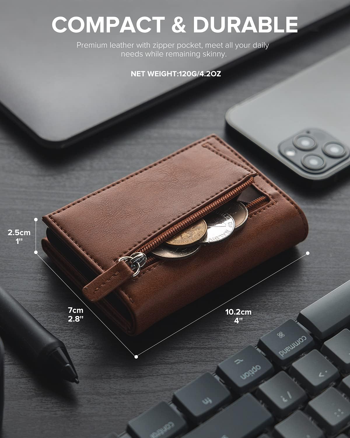 Gran espacio para tipos de efectivo. Fácil de viajar a cualquier lugar. Además, esta billetera tiene un bolsillo con cremallera para monedas. Consíguelo todo en uno.