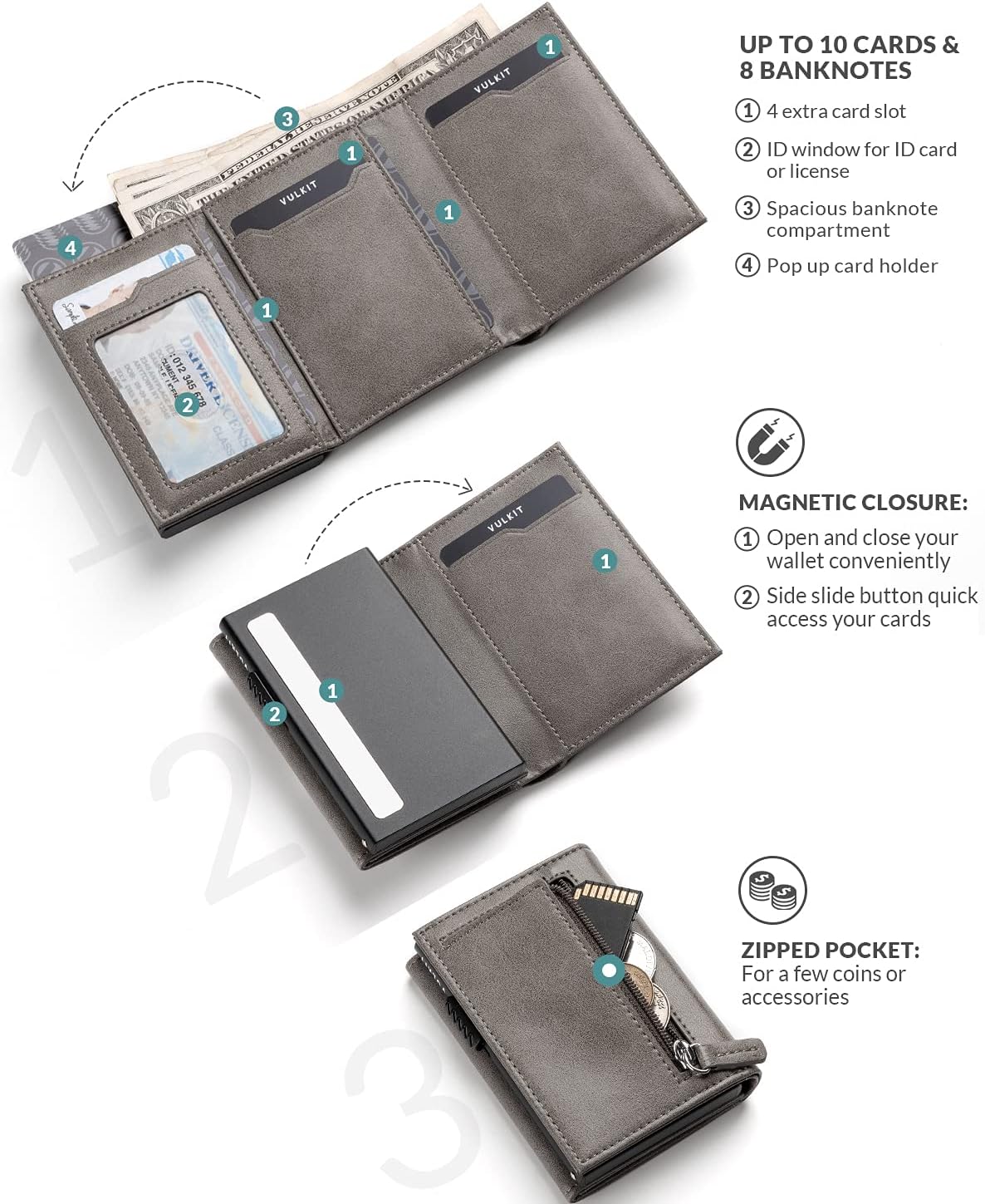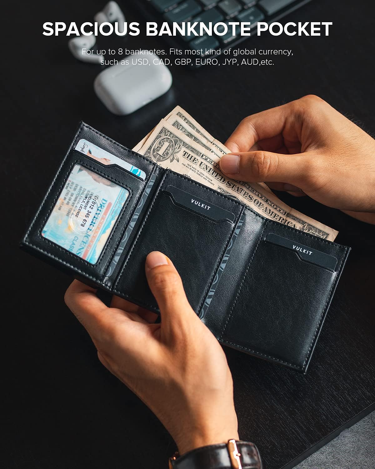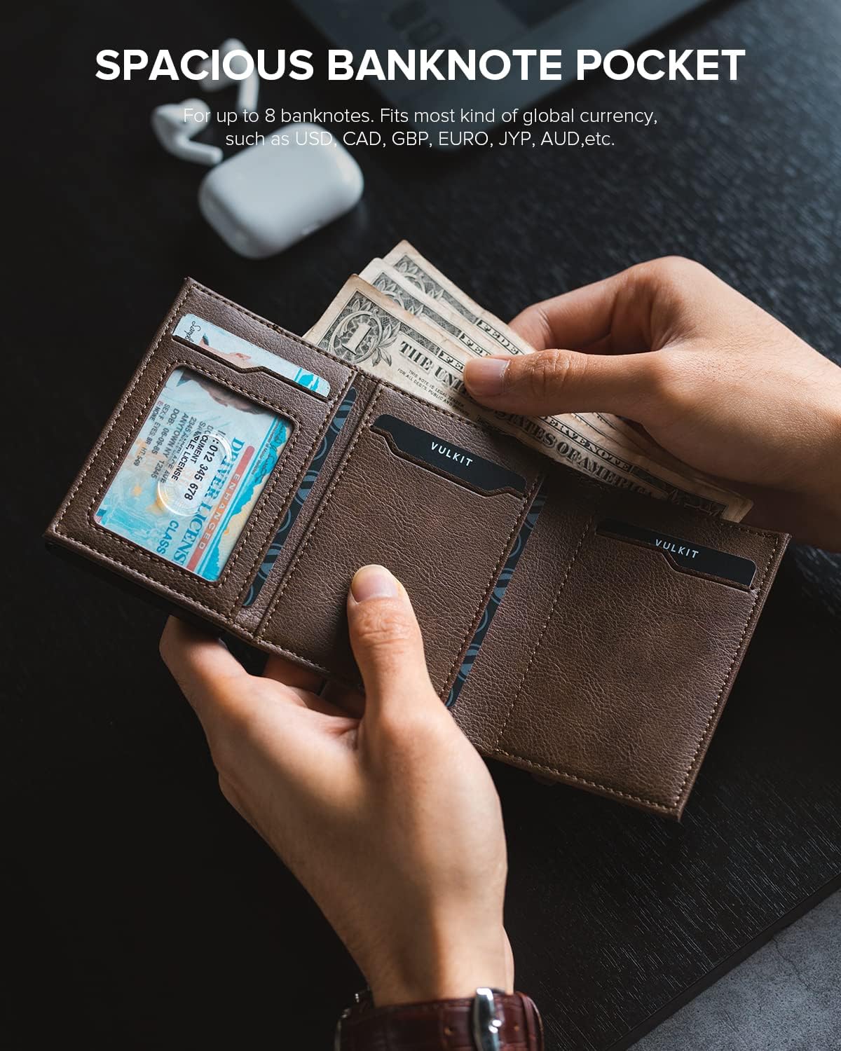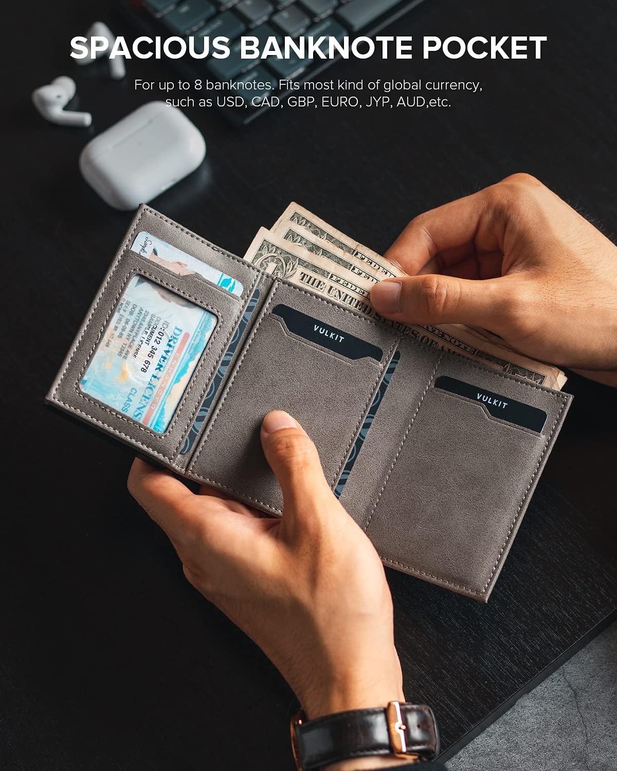 • Adecuado para clases de efectivo y monedas: Bolsillo de dinero grande para tipos de efectivo, Peso de México, dólar estadounidense, libra de GB, Euro, etc. Además, un bolsillo con cremallera para las monedas se reúne todo lo que necesita.
